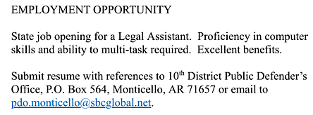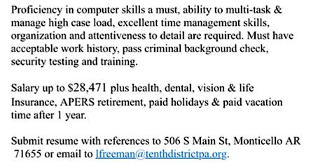 Comments Off on Office Position With 10th District Prosecuting Attorney’s Office Available
