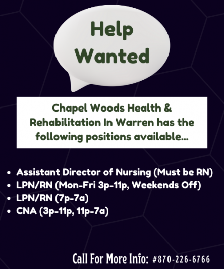 Comments Off on Help Wanted At Chapel Woods Health And Rehab In Warren, AR