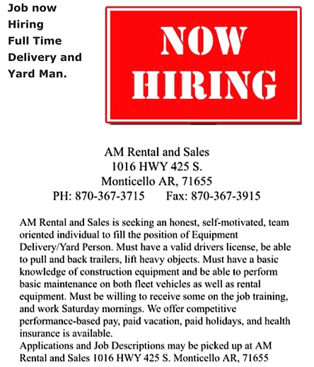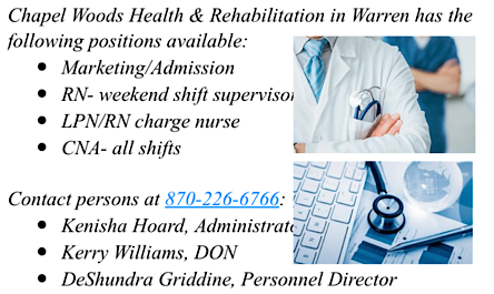 Resumes need to be mailed to Mark Pace @339 Green Hill New Hope Road, Wilmar, AR 71675 or call him at 870.723.2247 if you have any questions. The deadline for accepting applications is December 1. There will be a board meeting held on December 7 @ 6:00 in the Green Hill Methodist Church community building.