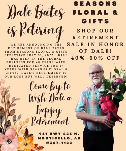 Seasons Floral & Gifts Sale In Honor Of Dale Bates Retirement, 40% To 60% Off, at 961 HWY 425 N.