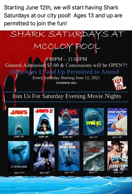 Shark Saturdays at City Pool, Starts Tomorrow!