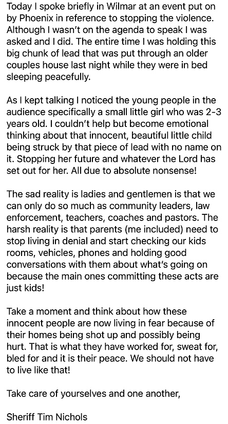 Sheriff Comments (Saturday) on Wilmar Shots Fired Call