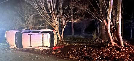 At 12:25 AM, Monday morning, the driver of the Chevy Trailblazer swerved to miss an animal on Bowser Road, losing control of the vehicle.