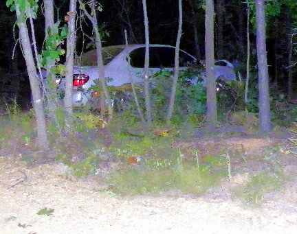 A witness as the accident scene told authorities that the driver, a white male, was traveling south on Firing Range Road and almost hit the witness’s vehicle before the Infiniti left the road, crossing a ditch and came to rest in a wooded area. When the witness told the driver that he had already called authorities, the driver took off running. He was last seen wearing a red shirt and white shorts.