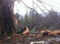 During the severe thunderstorm and Drew County late Friday afternoon, this large tree on Lacey – New Hope Road fell on a C&L powerline, causing the treetop to catch fire.