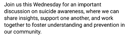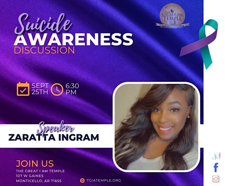 Suicide Awareness Discussion, Wednesday at Great I Am Temple