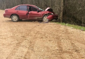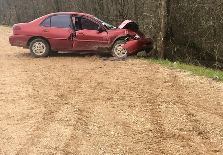 Around 9:10 Sunday morning, the driver of this southbound Ford Escort lost control of his vehicle on Old Highway 65, south of Winchester.