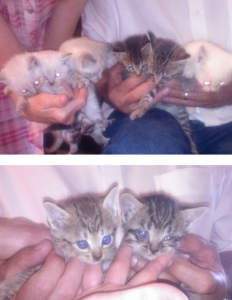 6 boys, 2 girls, approximately 4-6 weeks, found under old truck behind my house.