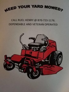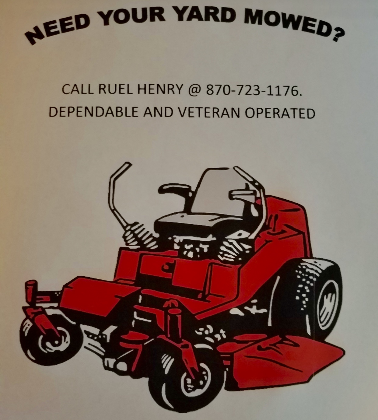 If you need your yard done contact Matthew at 870-370-8420 or text 870-723-4088