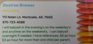 If anyone needs a babysitter weekdays from 4 to whenever or on most weekends
