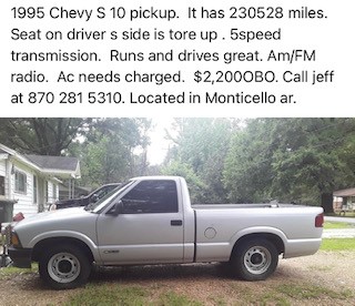 The body is in good shape, the truck needs new ball joints, a torque converter, and a timing chain.