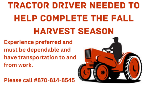Posted in Business Center Ad, Employment | Comments Off on Tractor Driver Needed