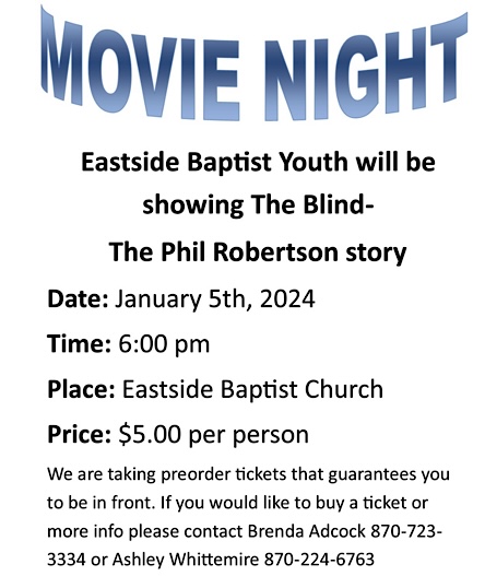 The Blind-The Phil Robertson Story – Showing at Eastside Baptist, January 5