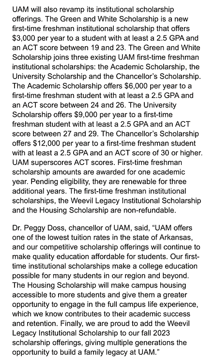 UAM Announces Revamped and New Scholarships, Increases Awards for Fall 2023