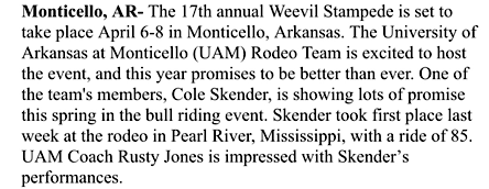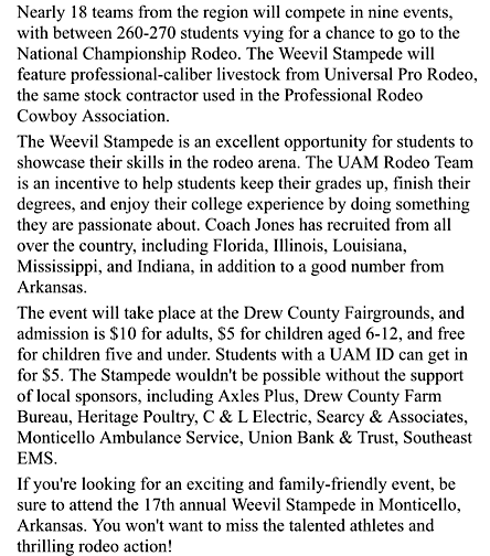 UAM Weevil Stampede set for 17th Annual Rodeo