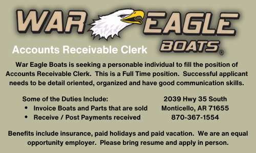 War Eagle Boats Looking For Accounts Receivable Clerk