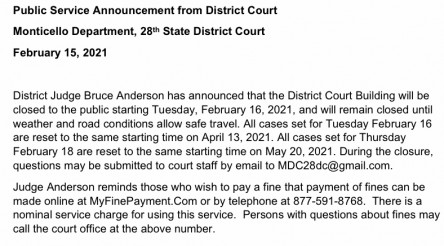 Allied Plumbing & Baker’s Electric – Monticello will open Friday at 9am and close at 3pm due to current weather conditions.