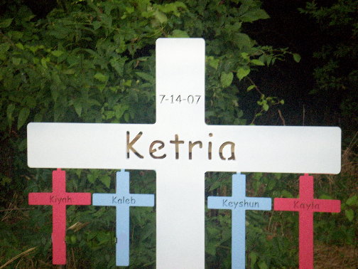 Ms. Will asks that as you are traveling HWY 425 N., approximately 4 miles south of Pine Bluff, take a look to your left at the piece of art and remember her daughter, Ketria, and grandchildren, Kiyah, Kayla, Keshon, and Kaleb.