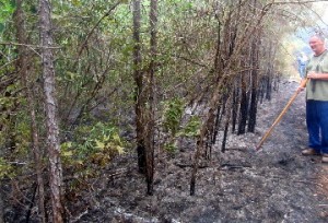 Around 6 pm, following a good thunderstorm in the area, a woods fire was reported near HWY 133, south of Lacey.