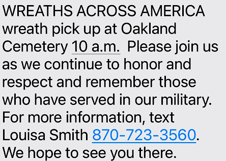 WREATHS ACROSS AMERICA Pick-up at Oakland Cemetery, Saturday