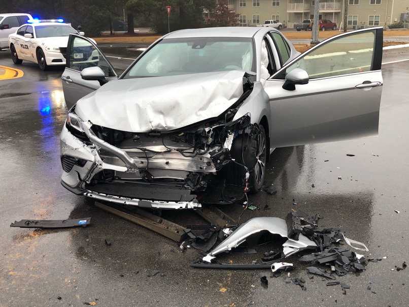 Positioning of the vehicles at the scene indicates that a GMC Terrain was pulling out of the UAM entrance, into the highway, in front of a southbound Toyota Camry.