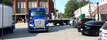 At approximately 340, Wednesday, this flatbed big rig made a left turn from McCloy Street onto Main Street (contrary to signage).