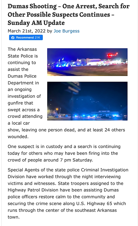 $100,000. Bond Set for Dumas Shooting Suspect- Full Case History