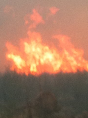The bottom photo, submitted by Hunter Jones, shows the fire feeding on fresh timber, with flames estimated to be aprroximately 150 feet tall.