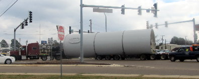 Issue will be the overpasses. These type of over size loads can not travel on interstates. Due to the size of the loads, US Highway regulators select the routes they must take, due to overpasses, turning lanes, etc. But look on the bright side. A company in Texas sold 60 windmills. That has got to be good for that city’s economy!