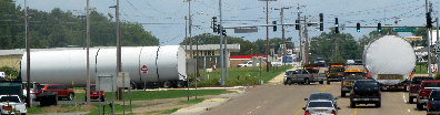 Due to the size of the loads, US Highway regulators select the routes they must take, due to overpasses, turning lanes, etc.