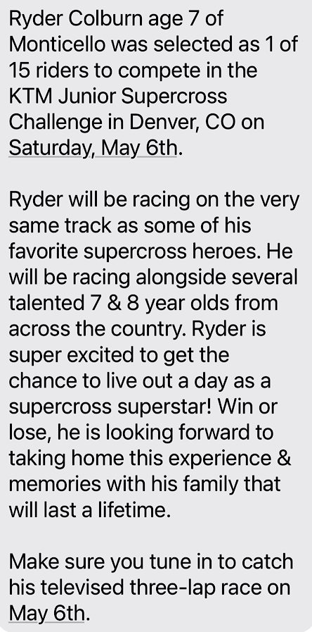 7 Year Old Competes in KTM Junior Supercross Challenge in Denver, Saturday