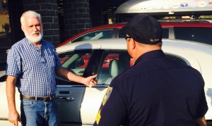 When he went into a local “sit down restaurant,” he left two small dogs in the sweltering car, while he enjoyed his meal; at least until someone noticed the barking, panting dogs inside the Lincoln Town Car (with the rolled up windows).
