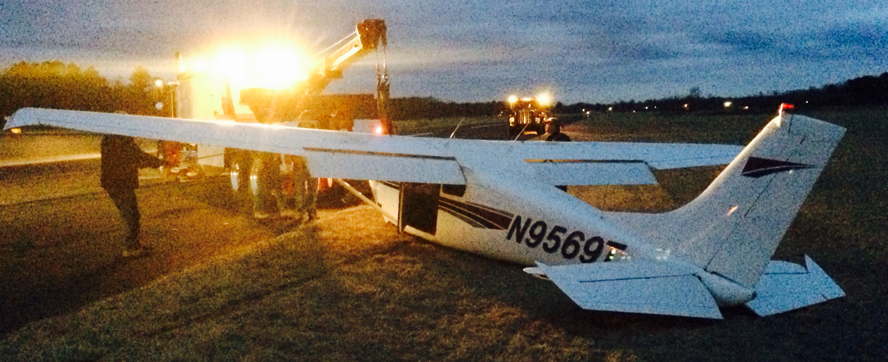 The plane landed. “belly down” on runway 3, then came to a stop on the grass next to the runway.