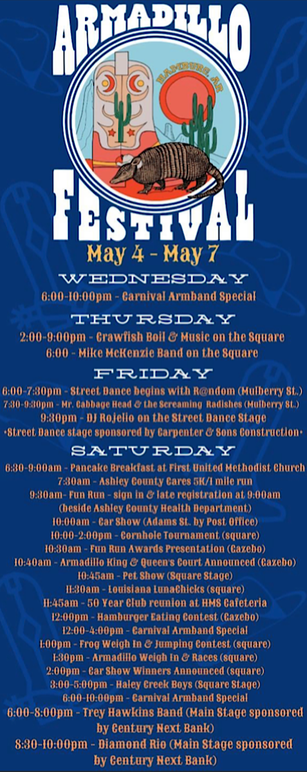 Armadillo Festival Schedule, Tonight & Saturday!!!