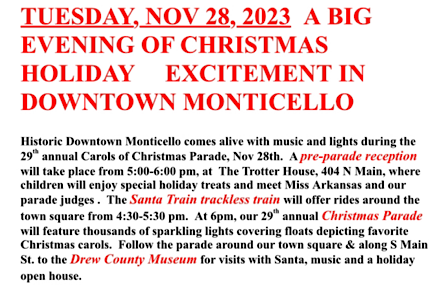 Posted in Chamber of Commerce, Christmas | Comments Off on Annual Carols of Christmas Parade, Tonight, 6 PM