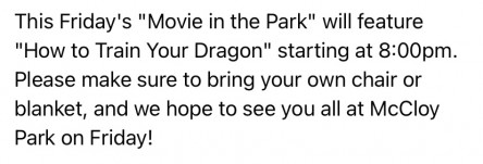 Posted in City, Entertainment | Comments Off on Movies in the Park, Friday