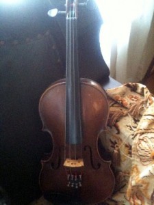 What makes this violin interesting, and also goes to show the ingenuity of our forefathers, is on the inside of the violin are rattle snake rattlers, It was said that not only did the rattlers produce a soothing vibrato tone to the violin, it also kept the mice from nesting in it.