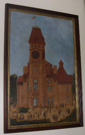 This painting of the old courthouse hangs in the music room of the museum and was painted by Dr. James Smith DDS. An African-American, who was originally from, Chicago but lost everything to the great Chicago fire.