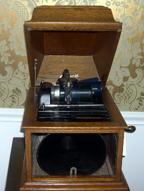This is a Edison Amberola DX on display in the living room at the museum, It was produced in July of 1914 and retailed for $30 dollars. It was the first model that had a internal speaker instead of the “horn” and played a 4 minute plastic disc instead of the old fragile wax disc. This model was also the last of the Edison line to be belt driven and was said to be Edison’s “final achievement”. He later came out with a more inexpensive worm gear driven model.