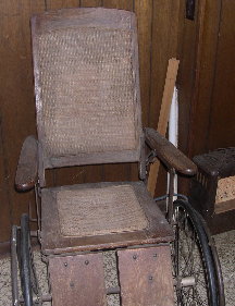 Check out this turn of the century wheel chair, complete with a “wicker” woven back and seat for comfort.