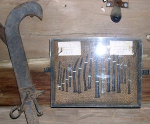 This display is an assortment of home made nails and is on display in the Taylor cabin along with a number of tools from a long gone era. Come see this and many other interesting items on display at your Drew County Museum, We are open Fridays from 1pm till 5pm, and Saturdays from 2pm till 5 pm and Sunday by appointment..