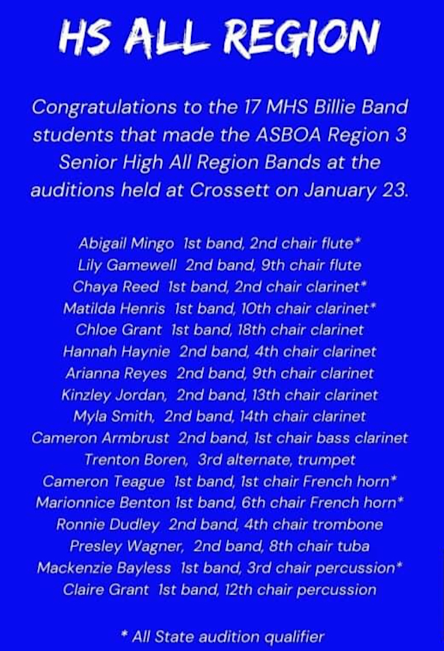 CONGRATULATIONS to MMS, MJHS and MHS 2023 All-Region Choir Students!!!