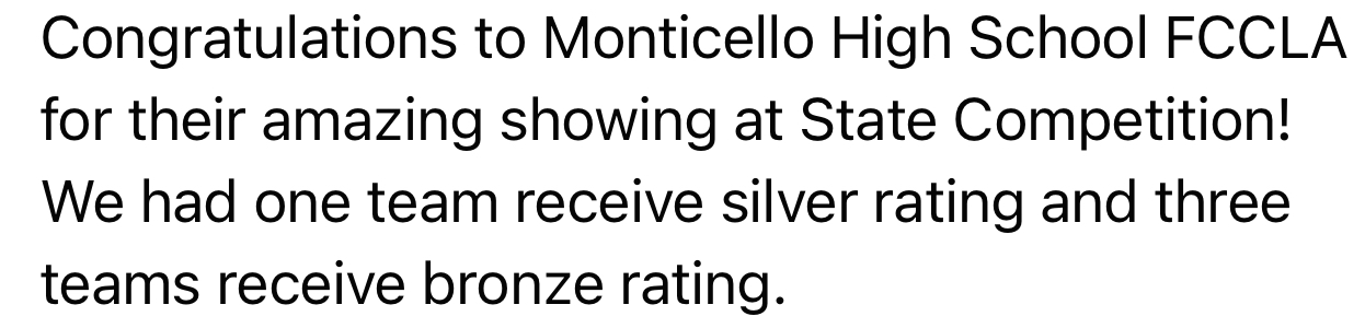 Monticello High School FBLA students recently competed in the District III FBLA competition. Congratulations to: