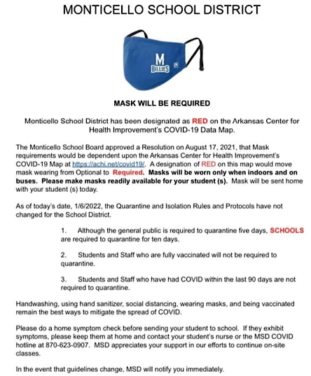 Posted in Monticello School News | Comments Off on MSD Mask Update