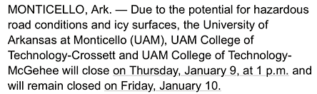 The University of Arkansas at Monticello (UAM) Office of Admissions will host Weevil Welcome: College Preview Day on Monday, March 3, beginning at 9 a.m. Registration will be held in the Gibson University Center on UAM’s Monticello campus. Check-in will begin at 8:30 a.m., and the program will run until noon.