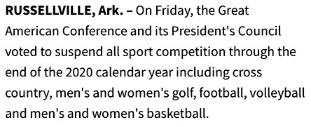 In addition to procedures required as a member institution of the Great American Conference, these guidelines have been put in place in accordance to Arkansas Department of Health, CDC and University guidelines and serve to provide the safest environment for our student-athletes, coaches, staff and fans. (more…)