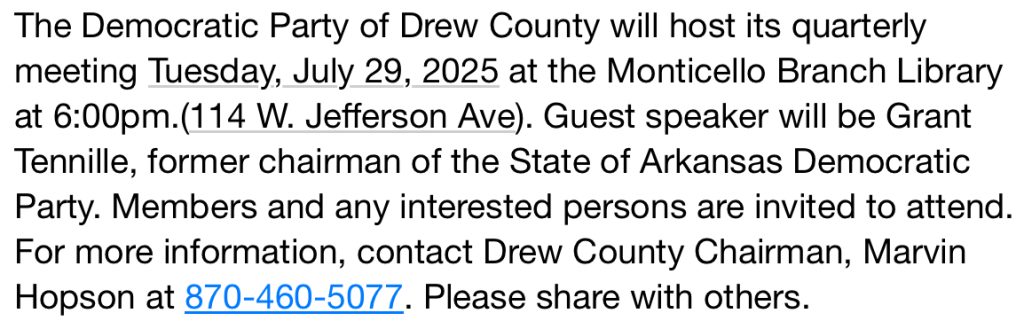 County Democratic Party Meeting, Tuesday at Chamber of Commerce – Update