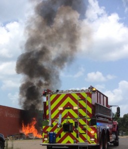 The fire was contained to an area, approximately 25 x 30′,  outside of the building, where only pallets and paper were  involved.