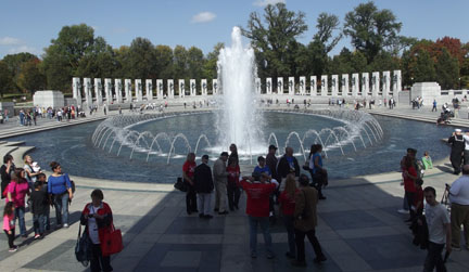Then the veterans piled aboard two large buses for their whirlwind tour of the Capitol Mall. (Incidentally, each bus had a doctor and nurse aboard.) Their first stop was the 2004 WWII Memorial and it nearly took their breaths away. Words cannot do the memorial justice!