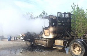 The fire, which occurred 3 miles north of Lacey, is believed to have started in the dashboard, as the unloaded vehicle was driving south.